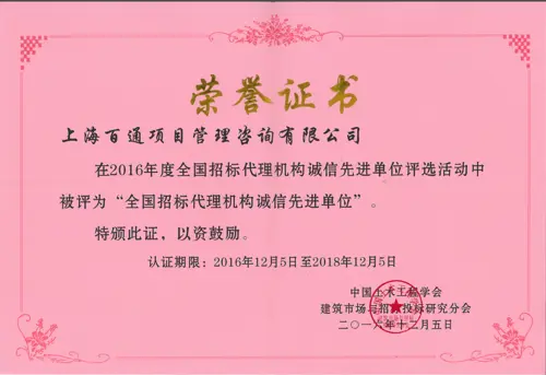 工程招标代理行业数据采集单位(2022)荣誉证书