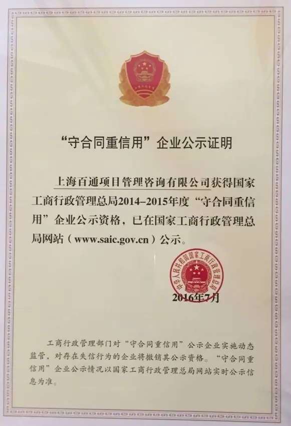 此次,在國(guó)家工商行政管理總局公布的2014-2015年度全國(guó)“守合同重信用”公示企業(yè)名單中,上海市共有300家企業(yè),浦東新區(qū)僅有38家企業(yè)名列其中,我司有幸成為這38家企業(yè)之一。獲此殊榮是對(duì)我司長(zhǎng)期以來誠(chéng)信經(jīng)營(yíng)行為的肯定,我司將一如既往恪守誠(chéng)信,保持榮譽(yù),再創(chuàng)佳績(jī),為本市企業(yè)信用建設(shè)再作貢獻(xiàn)!