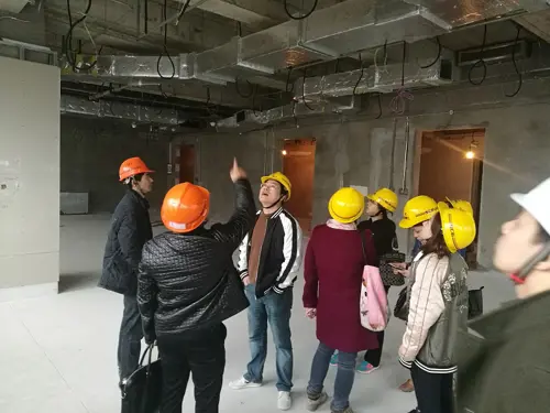 2017年3月12日一大早,在我司造價部領導邢一東、王曉曦、錢衛華同志的組織和帶隊下,造價部同事們前往中國黃金大廈項目部,開展實地參觀學習活動。