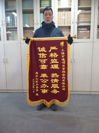 濰坊新村街道濰坊九村、十村(一)屋面及相關設施改造項目工程:該項目監理機構工作高度負責、勤于督查、嚴格監理、熱情服務、誠信可靠、秉公辦事,得到濰坊新村街道、濰坊九村、十村居委、物業及業委會一致認可,兩個居委分別贈送錦旗以示表揚和感謝。