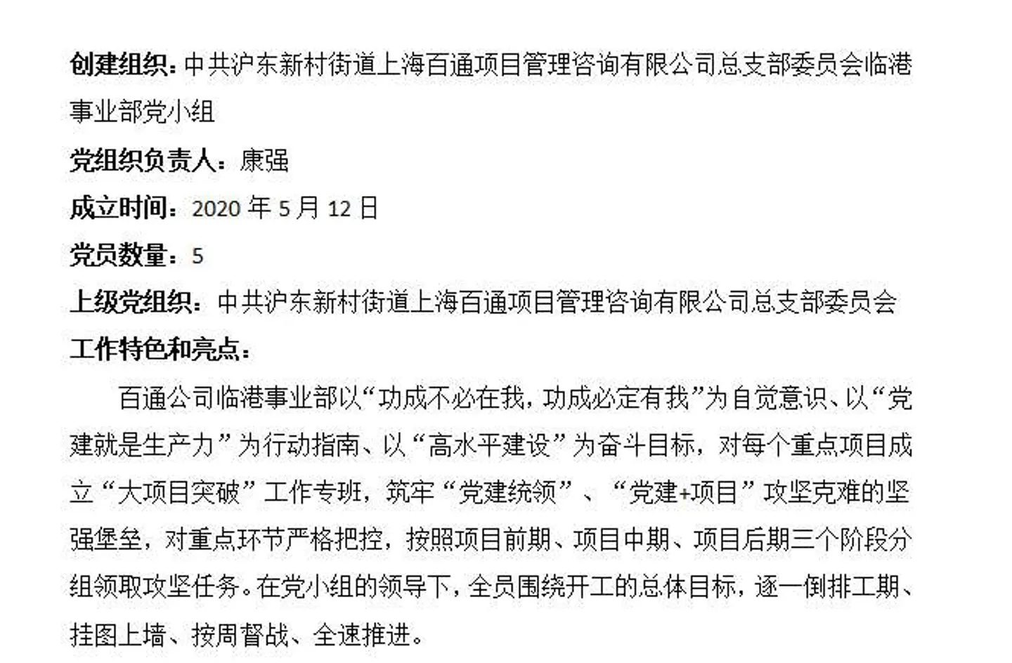 公司臨港事業(yè)部黨小組入圍創(chuàng)建上海市建設(shè)工程咨詢行業(yè)基層黨組織示范點(diǎn)”建設(shè)先鋒“