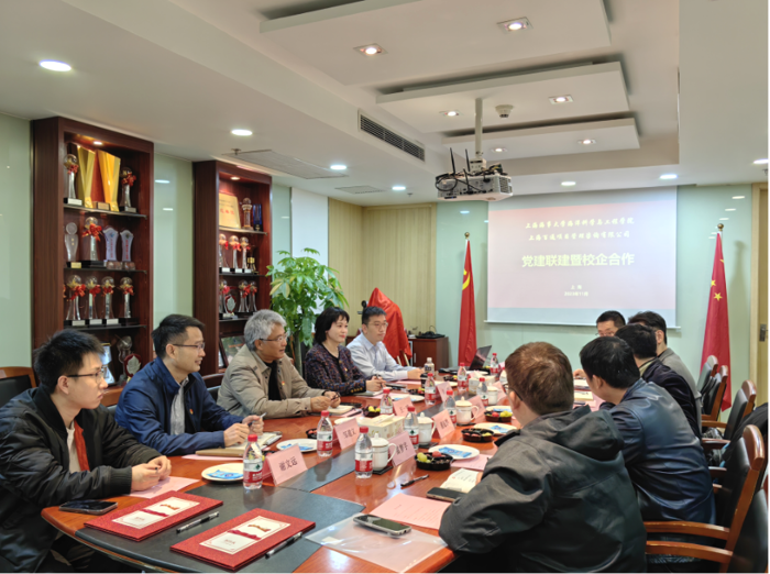 王威儀書記對海事大學的發展、學院建設、專業設置、科研建設以及黨組織設置等方面進行了全面介紹。他重點強調了海科院作為上海海事大學在“航運、物流、海洋”三大重點發展領域中海洋類學科的重要支柱地位,學院專業涵蓋環境工程、安全工程、港口航道與海岸工程以及材料科學與工程等,這些專業與百通公司的業務發展以及人才需求高度契合。