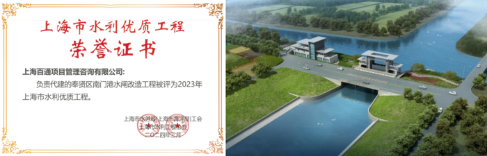 我司代建的奉賢區南門港水閘改造工程榮獲“上海市水利優質工程”榮譽證書。該項目工程總投資12855.19萬元,涵蓋舊水閘拆除、三孔24米水閘改建及新建水閘管理房。項目建成對提升奉賢區防洪排澇能力、改善水環境及合理利用水資源具有重要意義。