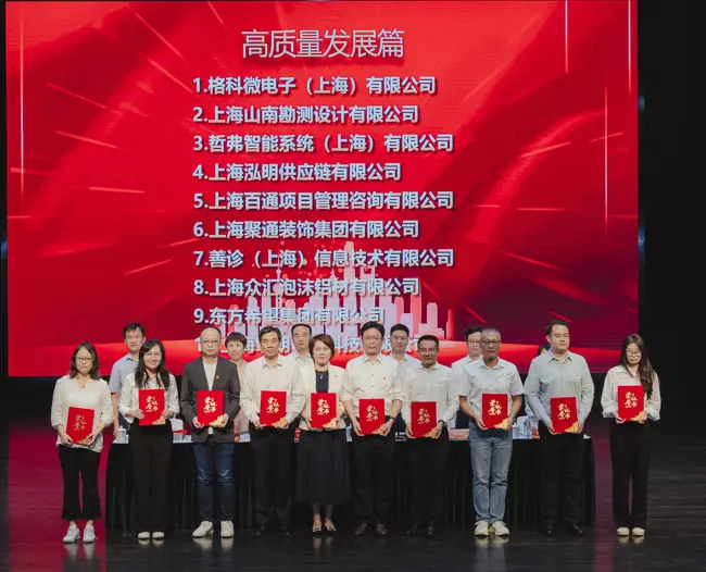 會上,我司《高舉理想信念火炬,筑引領區精品工程》工作案例獲得表彰,成功入選2024年《浦東新區民營經濟人士理想信念教育活動優秀案例集》高質量發展篇,公司董事、黨委書記、副總經理顧超同志上臺領獎。