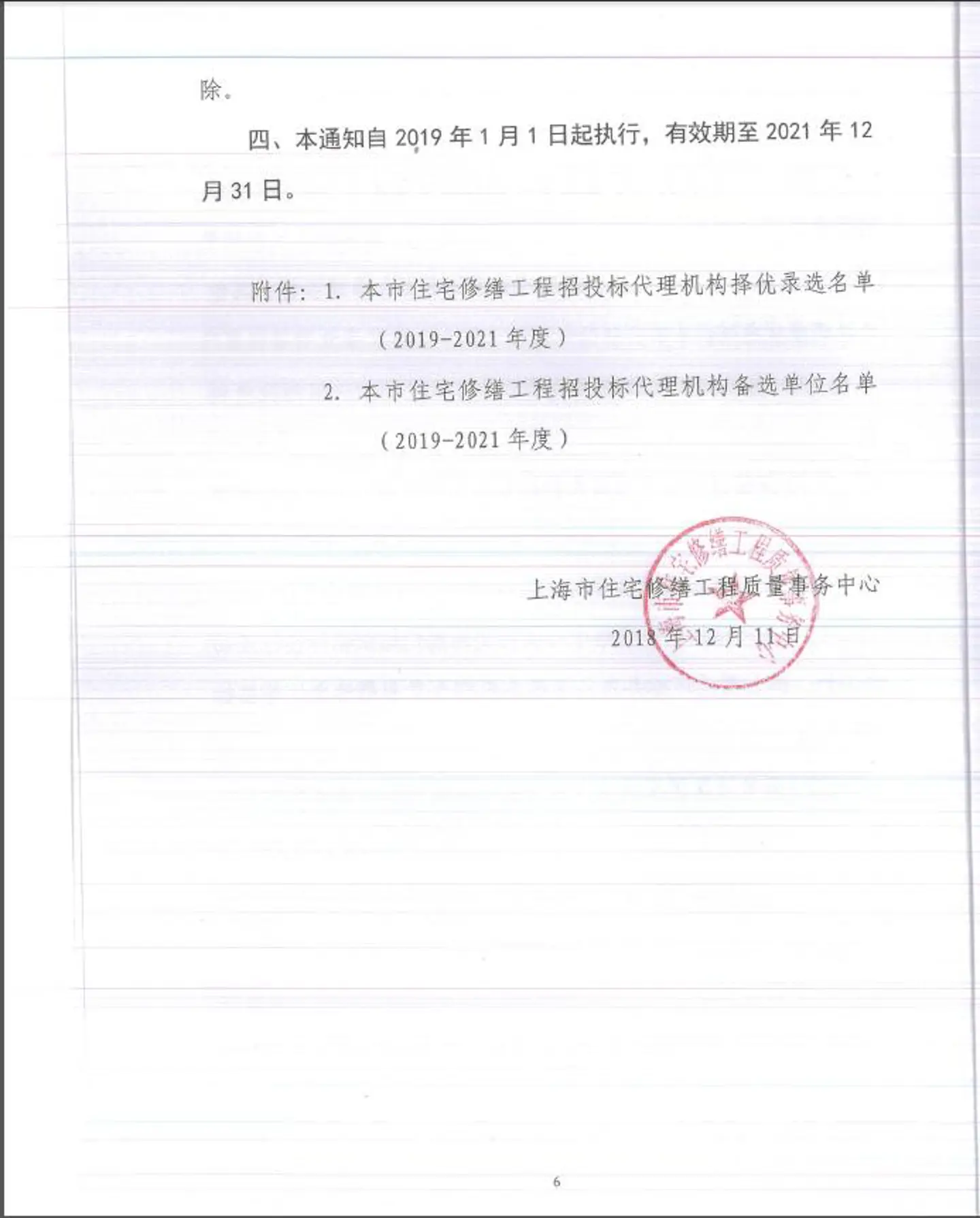 2019-2020年度本市住宅修缮工程招标代理机构及管理制度(沪住修缮〔2018〕24号)