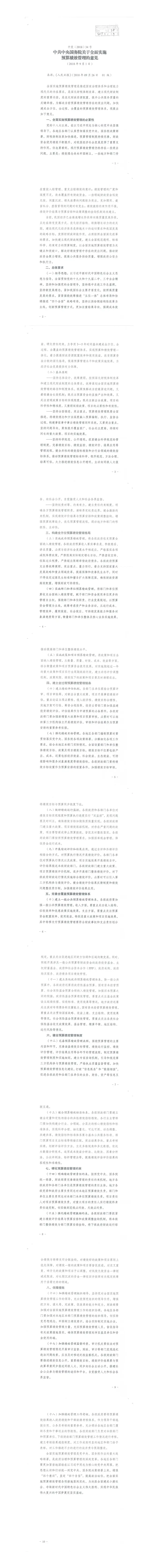 [中共中央 国务院] 关于全面实施预算绩效管理的意见【中发〔2018〕34号】