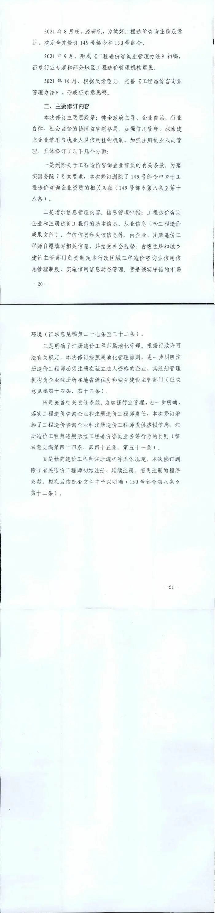 [住建部] 关于征求《工程造价咨询业管理办法》(征求意见稿)意见的函【建司局函标〔2021〕137号】