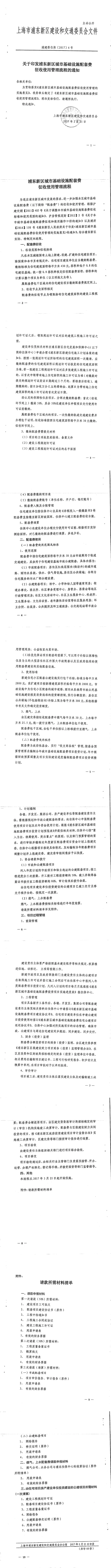 关于印发浦东新区城市基础设施配套费征收使用管理流程的通知【浦建委住保〔2017〕6号】