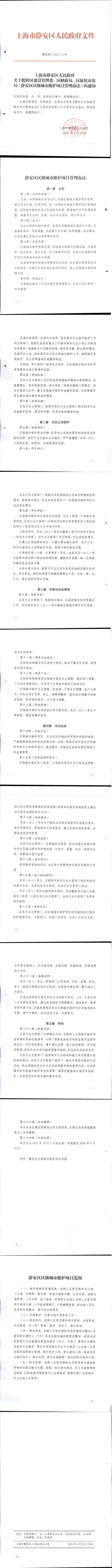 [静安]关于批转区建设管理委、区财政局、区绿化市容局《静安区区级城市维护项目管理办法》的通知【静府规〔2021〕2号】