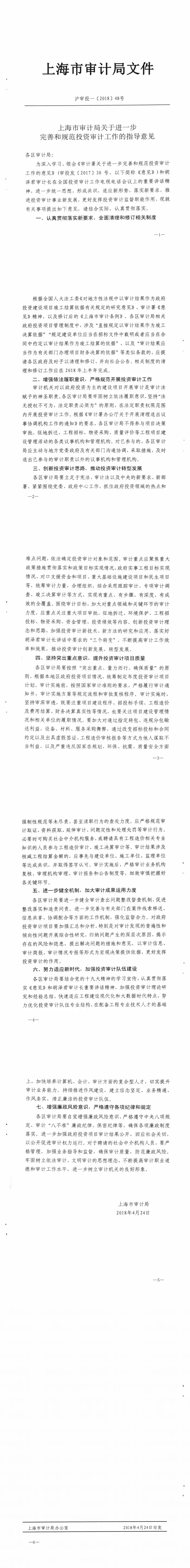 [市审计局] 关于进一步完善和规范投资审计工作的指导意见【沪审投—〔2018〕48号】
